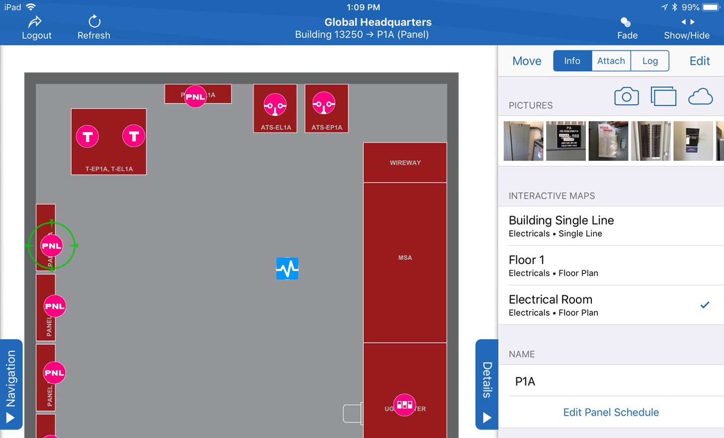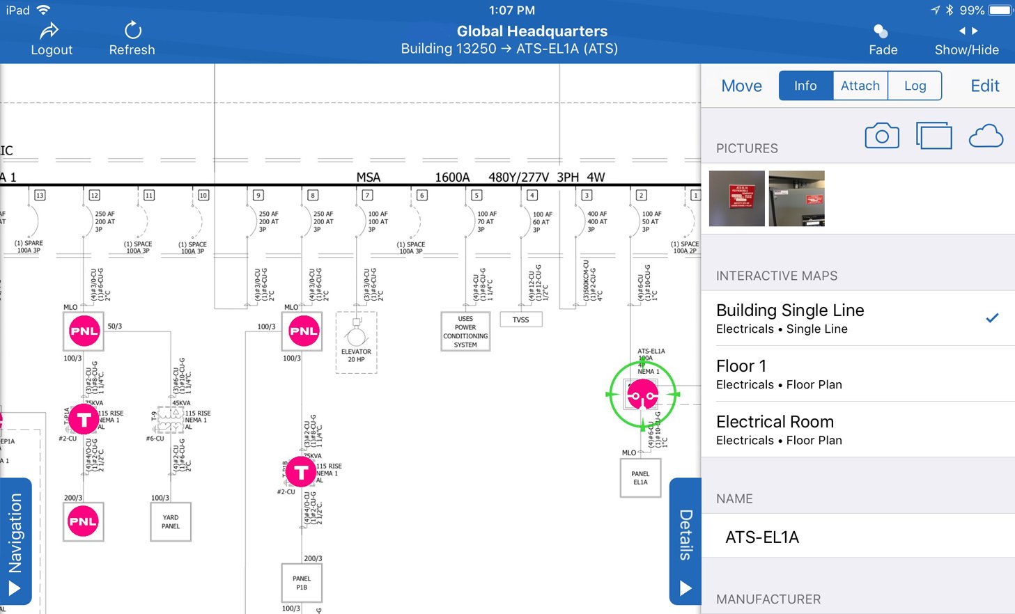 Easily determine electrical connections from panels to equipments. View overall singleline diagrams.